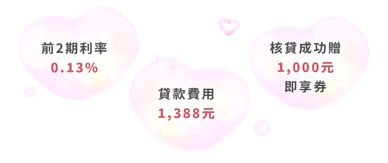 ※信貸利率以首2期0.13%試算而得,實際月付金以核貸內容計算為主。