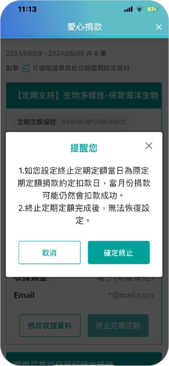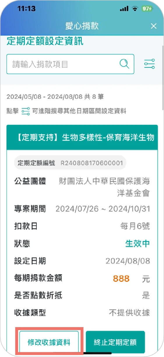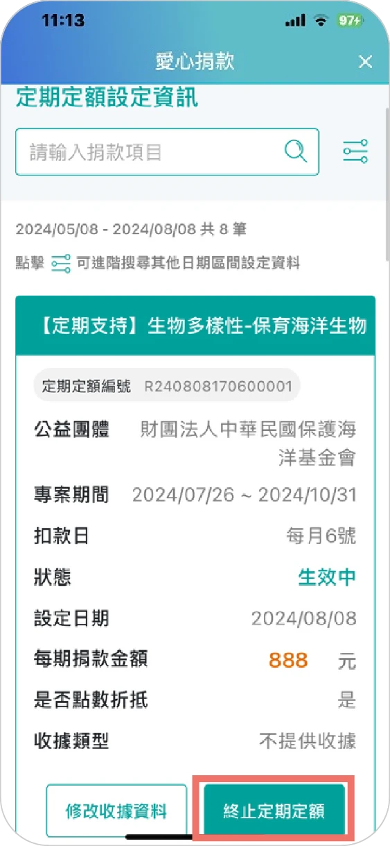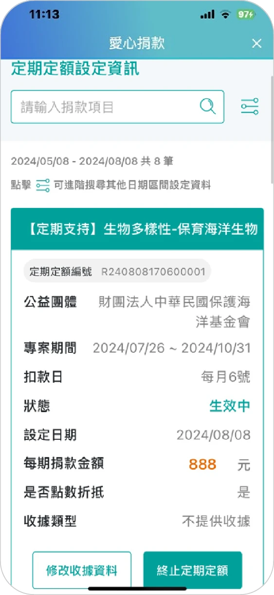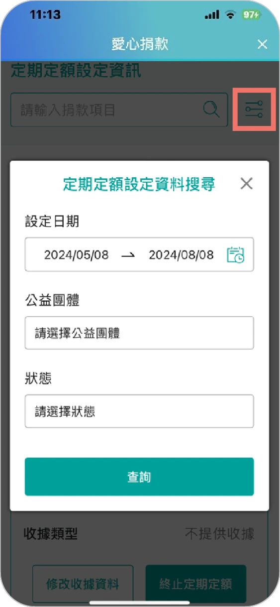 點選搜尋圖示❤小提醒:可進階搜尋定期定額捐款設定資料