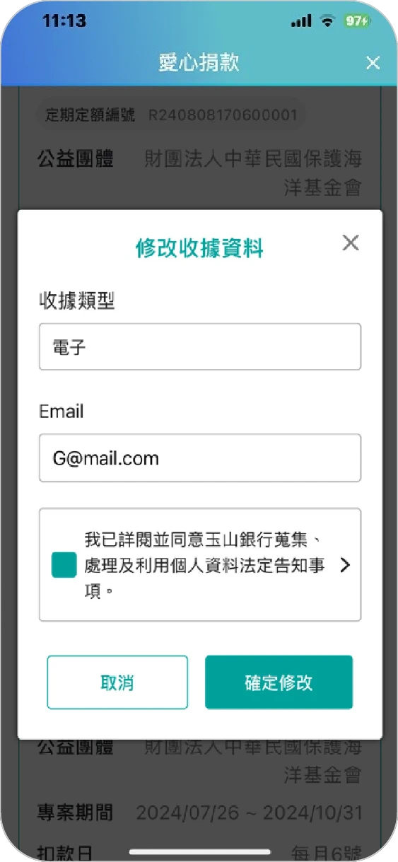 點選確定修改❤小提醒:請閱讀同意「個人資料法定告知事項」