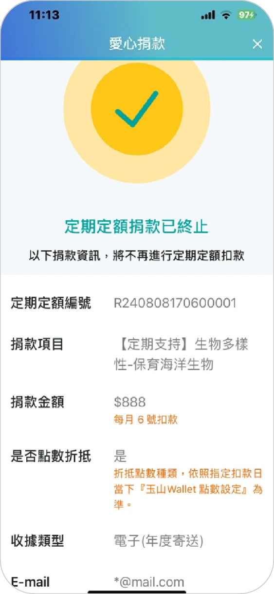 ※玉山信用卡及玉山簽帳金融卡皆可進行捐款