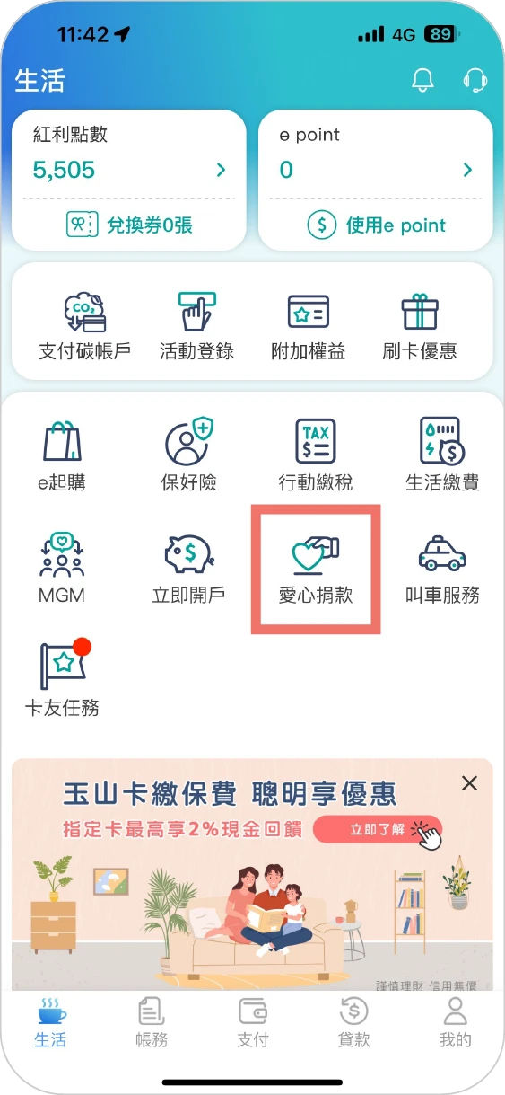 ※點數折抵捐款金額僅適用以信用卡捐款交易進入生活頁