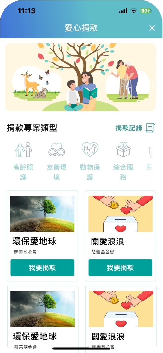 點選我要捐款❤小提醒:選擇您關注的專案類型,點選「我要捐款」後,即可瀏覽專案詳細內容