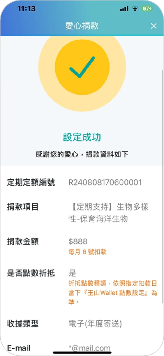 ※玉山信用卡及玉山簽帳金融卡皆可進行捐款