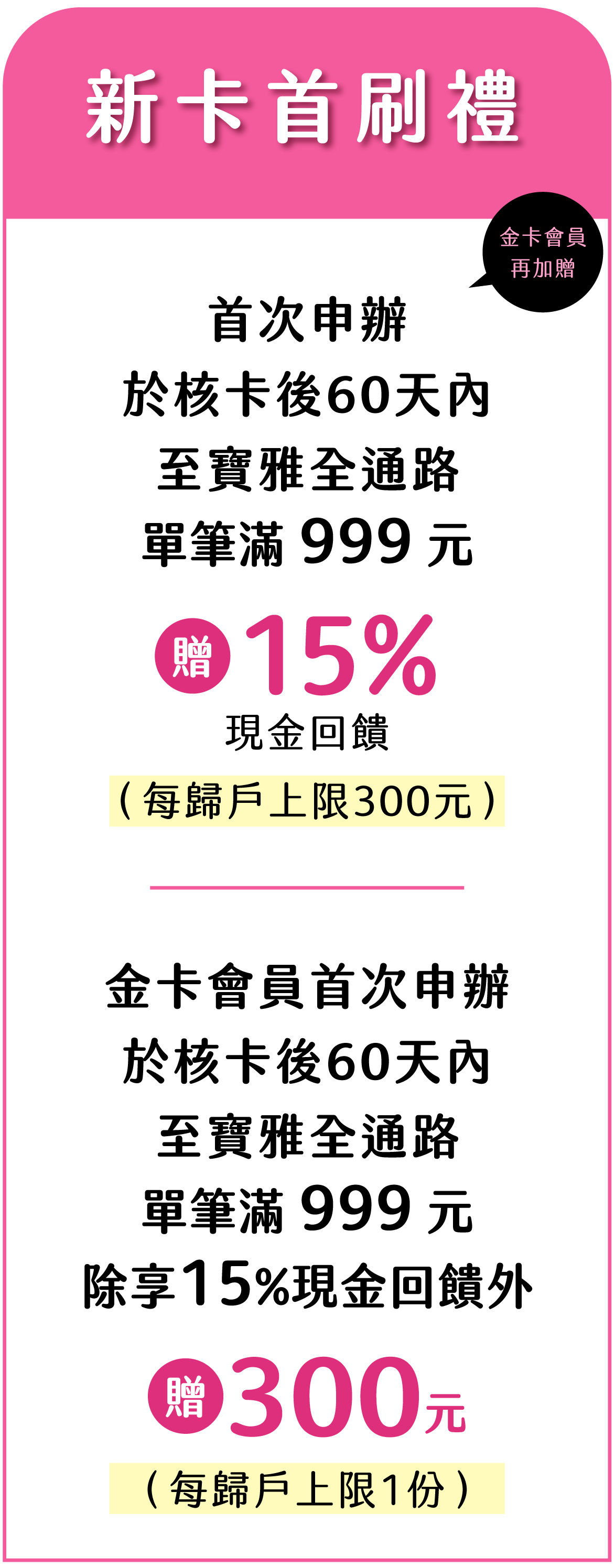【新卡首刷禮 金卡會員再加碼】