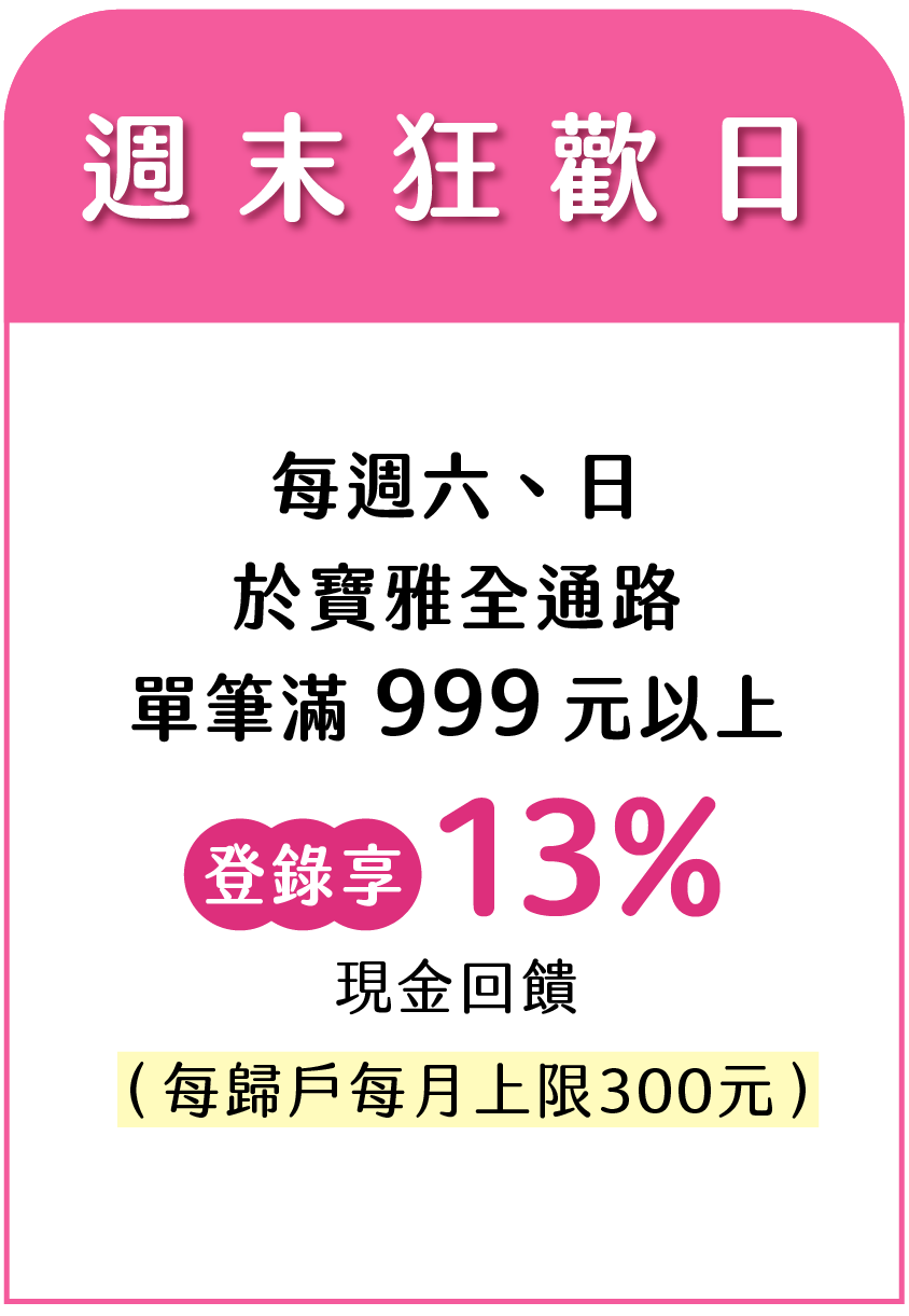 【週末狂歡日13%回饋】