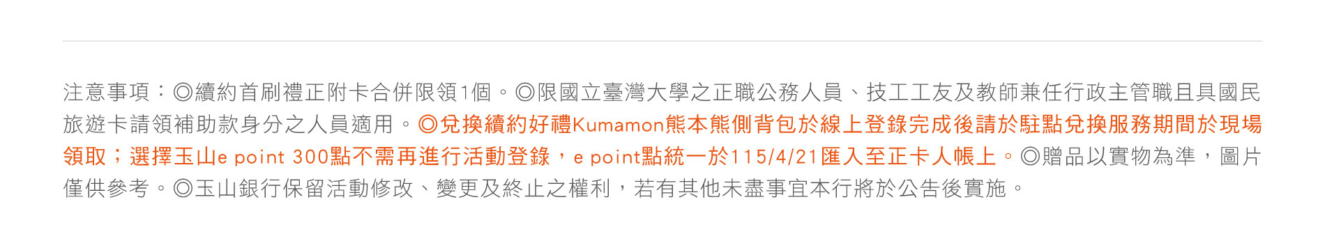 ◎分期零利率產品:零手續費、零總費用年百分率 ◎循環利率:5.88%~15%(依本行電腦評等而訂,基準日:2015/9/1) ◎預借現金手續費(依預借現金約定結付幣別區分):預借現金金額x3.5%+(新臺幣150元/5美元/550日圓/4歐元) ◎其他相關費率依本行網站及申請書公告
